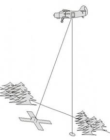 бесполезно, так как обе проекции на ориентиры пересекаются только в точке сброса пристрелки, а повторный заход производится по другой траектории, и точку эту не пересекает. До пересечения первого ориентира, уверенно можно утверждать, что траверз точки отделения находится впереди ЛА, а после пересечения второго ориентира, уверенно можно утверждать, что траверз точки отделения находится позади ЛА, но, в пределах заштрихованной зоны траверз точки сброса пристрелки неопределим. Как видите, точность пристрелочного расчета гораздо ниже, чем принято считать. Поэтому, со всей ответственностью заявляю: выполненный на основании достоверных данных о погодных условиях, полный арифметический расчет прыжка, является более точным, чем расчет по пристрелочному парашюту. Еще одним серьезным недостатком пристрелочного расчета прыжка является его высокая стоимость по сравнению со стоимостью арифметического или графического расчета, так как на его выполнение затрачивается летное время и топливо. Исключение составляют прыжки с задержкой раскрытия парашюта. В этом случае пристрелочный заход выполняется в процессе набора высоты, и время на него практически не затрачивается. Тем не менее, в случае отсутствия достоверных метеоданных, пристрелочный расчет является единственно возможным способом расчета прыжка. Расчет по пристрелочному парашюту осуществляется путем сбрасывания пристрелочного парашюта или пристрелочной ленты с ЛА, на высоте, соответствующей высоте раскрытия парашютов. Скорость снижения пристрелочного парашюта составляет 5 м/с, что примерно соответствует скорости снижения людских парашютов, то есть, пристрелочный парашют снижается приблизительно такое же время как парашютист под куполом парашюта. При этом по удалению и направлению относа пристрелочного парашюта под действием ветра, судят о положении точки отделения, отделившись в которой, парашютист на нейтральном парашюте приземлится в центре площадки приземления (парашютном круге). Существуют два способа расчета по пристрелочному парашюту: