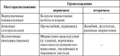 Понятие о растительной ткани.Классификация тканей растений.Характеристика меристем. Ткани -это устойчивые, закономерно повторяющиеся комплексы клеток, сходные по строению и приспособленные к выполнению одной или Нескольких функций. 1. Образ.ткани или меристемы-обладают способностью к делению и формированию всех прочих тканей. 2.Основные составляют большую часть тела растения бывают: ассимиляционные (хлорофиллоносные),запасающие,дыхающие-аэренхима,водоносные 3.Пограничные ткани: 1) наружные (покровные) преоблад.функций газообмена и транспирации,мех.защита от влияний внешн.среды 2)внутренние (эндодерма,экзодерма,обкладочные клетки сосуд.-волокн.пучков) с преоблад.функций регуляции продвижения вещ-в (барьерная ф-я) 3) ризодерма-наружная ткань с преоблад.ф-ий всасывания (покровно-всасывающая ткань корня) 4.Выделительные ткани: 1)наружные: железистые волоски,водяные устьица (гидатоды),нектарники 2)внутренние: выд.клетки с эфир.маслами,смолами,дуб.вещ-ами; многоклет.вместилища выделений,млечники 5.Мех.ткани (опорные,скелетные): колленхима,склеренхима 6.провод.ткани: ксилема (древесина)-ткань восход.тока; флоэма(луб)-нисход.ток 6 типов тканей: образовательные (меристемы) и постоянные: покровные, основные,механич.,провод.,выделит. Онтогенетическая: первичные из зародыша семени,верхушка побега,кончик корня Вторичные: камбий-вторичная ксилема, вторичная флоэма
