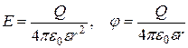де F — сила взаємодії точкових зарядів Q 1 Q 2; r –відстань між зарядами; e– проникливість; e0 – електрична постійна. Напруженість електричного поля і потенціал