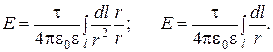 де r – радіус-вектор, спрямований від виділеного елемента dl до точки, в якій визначається напруженість. Використовуючи принцип суперпозиції електричних полів знаходимо інтегруванням напруженість Е і потенціал j поля, створеного розподіленим зарядом: