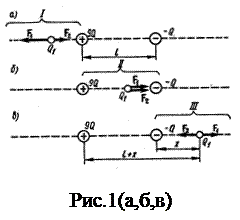 Нехай х і l + х - відстань від меншого і більшого зарядів до заряду q1. Виражаючи в рівності (1) F1 і F2 відповідно до закону Кулона, одержимо