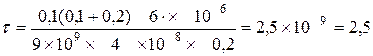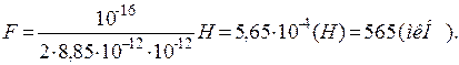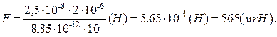 Виразимо фізичні величини, що входять до формули (1), в одиницях СІ (t= 5.10-8 Кл, Q=4.10-8 Кл,e0 =8,85.10-12 Ф/м) і зробимо обчислення: