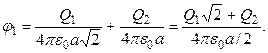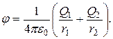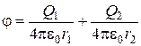 Відповідно до принципу суперпозиції електричних полів потенціал j результуючого поля, утвореного двома зарядами Q 1 і Q 2, дорівнює алгебраїчній сумі потенціалів: