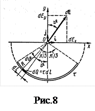 Підставимо вираз dЕу в (1) і, беручи до уваги симетричне розташування дуги щодо осі О у, межі інтегрування візьмемо від 0 до p/3, а результат подвоїмо: