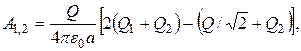 Підставляючи вираз Е1 з (1) і Е2 з (2) у (3) і виносячи загальний множник 1/(4pe0) за знак кореня, отримаємо