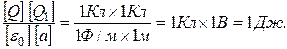 Перевіримо, чи дає права частина отриманої рівності одиницю напруженості (В/м):