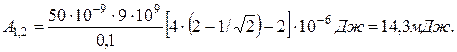 Підставимо числові значення фізичних величин у СІ (Q =50.10-9 Кл, Q 1=4.10-6Кл, Q 2=2.10-6 Кл, а= 0,1 м, 1/(4pe0) =9.109 м/Ф) і зробимо обчислення: