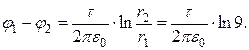 де Інтегруючи цей вираз, знайдемо різницю потенціалів двох точок, що перебувають на відстанях r 1 і r 2 від вісі циліндра: