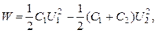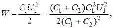де W1 - енергія, яку мав перший конденсатор до приєднання до нього другого конденсатора; W2 - енергія, що має батарея, складена з двох конденсаторів. Енергія зарядженого конденсатора визначається за формулою