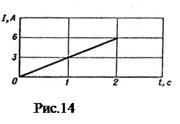 Приклад 17. Сила струму в провіднику опором R =20 Ом зростає протягом часу D t =2с за лінійним законом від I 0=0A до I 1=6А (рис.14). Визначити теплоту Q1, що виділилася в цьому провіднику за першу секунду, і Q2 - за другу, а також знайти відношення Q2/Q1.