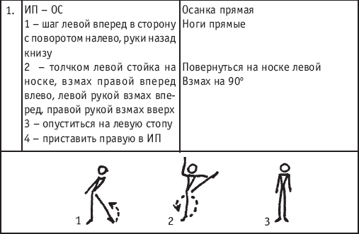 ПИСТОЛЕТ» В ПОВОРОТЕ С ШАГОМ ЛЕВОЙ ВПЕРЕД, ВЗМАХ ПРАВОЙ ВПЕРЕД, РУКИ ВВЕРХ, ПРЫЖОК ВВЕРХ ТОЛЧКОМ СОГНУВ ЛЕВУЮ, В ПОВОРОТЕ НА 360°, С ПООЧЕРЕДНЫМ ОПУСКАНИЕМ НОГ В ИП Подводящие упражнения: По мере усвоения прыжка «Пистолет» выполнять прыжок в повороте на 360°, с одного шага или шага галопа.