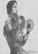 <<< Предыдущая глава Вернуться к оглавлению Следующая глава >>> Цель упражнения: Для наращивания массы и создания формы бицепсов. Выполняя стандартное сгибание рук с гантелями вместо штанги, вы работаете с несколько меньшим весом, но руки получают свободу движений, и вы можете добиться еще большего сокращения мышц. Как и при сгибании рук со штангой, вы можете немного заниматься "читтингом" во время этого упражнения, но постарайтесь свести это к минимуму. Выполнение: (1) Сядьте на край скамьи или прислонитесь спиной к опоре наклонной скамьи, установленной в вертикальном положении. Возьмите гантели в каждую руку и вытяните руки вдоль туловища, ладонями к телу. (2) Удерживая локти неподвижно, как шарниры, поднимите гантели вперед и вверх, повернув запястья таким образом, чтобы большие пальцы смотрели наружу, а ладони были направлены вверх во время движения. Поднимите гантели так высоко, как только можете, и напрягите бицепсы в верхней точке движения, чтобы добиться максимального сокращения. Опустите гантели вниз плавным движением по широкой дуге, полностью выпрямив руки и потянув бицепсы. Поворачивая запястья при подъеме и опускании, вы лучше сокращаете бицепсы, а также создаете изоляцию между бицепсами и трицепсами. Вы можете выполнять это упражнение стоя, что позволит работать с несколько большим весом, хотя движение будет не таким строгим.