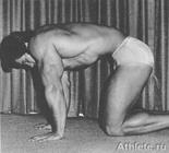 ВТЯГИВАНИЕ ЖИВОТА ("ВАКУУМ") Способность контролировать мышцы брюшного пресса до такой степени, когда вы можете удерживать полный "вакуум" во время позирования, становится утраченным искусством в бодибилдинге. Это печально, поскольку втянутый живот не только впечатляюще выглядит на сцене, визуально уменьшая линию талии и увеличивая размер и полноту грудной клетки, но также позволяет развить рельефность мышц живота и постоянно следить за ними, даже в те моменты, когда вы стоите в расслабленной позе. В напряженной атмосфере соревнований культуристы часто забывают о том, что за ними наблюдают все время, пока они находятся на сцене - даже когда они стоят позади и ожидают своей очереди. Нельзя давать судьям даже малейший намек на усталость, и способность держать мышцы брюшного пресса под жестким контролем является одним из способов избежать этого. В наши дни культуристам иногда бывает трудно полностью втянуть живот, потому что мышцы их брюшного пресса стали очень массивными. Но главная причина все-таки заключается в том, что они не занимаются регулярной практикой "вакуума". Этим искусством нельзя овладеть за один час. Точно так же, как любой другой вид позирования, оно требует постоянной тренировки в течение недель или месяцев, пока вы не установите полный контроль над мышцами. Чтобы выполнить "вакуум", встаньте на четвереньки, выдохните из легких весь воздух и втяните живот так сильно, как только можете. Удерживайте это состояние в течение 20-30 секунд, затем расслабьтесь на несколько секунд и попробуйте еще два-три раза. Следующим шагом является практика "вакуума" стоя на коленях. Выпрямитесь, положив руки на колени, и попытайтесь удерживать "вакуум" так долго, как только можете. Выполнение "вакуума" в положении сидя - еще более сложная задача. Но как только вы научитесь удерживать "вакуум" сидя без особых проблем, то будете в состоянии делать это в положении стоя при выполнении различных поз.