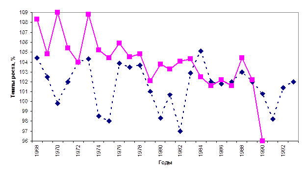 Как видим, в США четко обозначилось во второй половине ХХ века ускорение сокращения численности проживающих на фермах. Это давало основание предвидеть, что, спустя еще 10 лет, после 1980 года, фермерское население в США вновь заметно уменьшится. Так и случилось: в 1990 году число живущих на фермах составило 4,6 млн. человек (цепной индекс 71 %). В данном случае перед нами наиболее элементарный вариант статичной экстраполяции, т.е. распространения на будущее ранее определившихся тенденций. В реальной действительности эти тенденции далеко не всегда выражены столь однозначно. Например, если в 1910–1930 гг. отмеченная выше тенденция в США уже действовала, то с 1931 года начался ее перелом – численность проживающих на фермах возросла на 316 тыс., в 1932 году – на 537 тыс., в 1933 году – на 1005 тыс. человек и лишь с 1934 года сначала медленно, а затем все более ускоренно возобновился процесс восстановления выраженной в таблице тенденции. Случаен ли подобный перелом? Нет, не случаен. В несколько сглаженном виде он повторился в 1946–1947 гг., затем – в 1952–1953 гг. Эффективное предвидение требует специального исследования каждого такого факта. И если мы примем во внимание, что во всех этих случаях сказалось резкое ухудшение условий жизни в городах ввиду сначала «Великой депрессии», а позднее опять-таки под действием конъюнктурных экономических обстоятельств, то обоснование предвидения должно будет включить в себя оценку возможности повторения подобных событий в видимой перспективе[9]. Далеко не всегда экономическое предвидение может быть осуществлено на основе статичной экстраполяции, особенно если для этого недостает информации, либо речь идет о процессах переломного характера, «взрывного» действия и перехода с одного качественного этапа на другой. В этом случае появляется целесообразность использования предвидения в форме диалектической экстраполяции – путем оценки экономических последствий столкновения в перспективе противоречиво развивающихся процессов. Таким способом удалось К. Марксу выйти на предвидение периодической повторяемости капиталистических промышленных кризисов. Этот замечательный научный результат, который оправдывается вот уже в течение 140 лет, был получен на основе анализа динамики противоречий капиталистического расширенного воспроизводства. Противоречий между спросом и предложением, между отношениями разделения и кооперации труда, между отношениями организации производства на отдельных предприятиях и анархией в масштабах общественного воспроизводства, а в конечном счете – между общественным характером производства и частнокапиталистической формой присвоения. А поскольку развитие этих противоречий накладывается на определенные временные границы обновления основного капитала, в конечном счете, оказывается, что длительность межкризисного периода зависит от скорости этого обновления. Следовательно, совершенствование предвидения экономической динамики требует специального исследования вероятной длительности обновления основного капитала в каждом последующем цикле. Но это уже проблема не предвидения, а прогноза, которая будет рассмотрена в дальнейшем. Там, где предвидение охватывает широкую область экономических отношений, а также их многообразные связи с отношениями социального порядка, предвидение нельзя