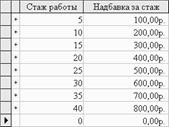 Таблица 4.3 Справочник «Стаж работы»