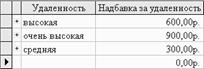 Вспомогательные таблицы-справочники также сформированы в режиме конструктора. Например, справочник удаленности выглядит как показано в табл. 2.