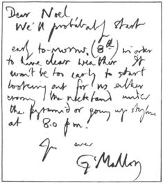 Записка, оставленная Мэллори Ноуэлу Оделу, с просьбой следить за его восхождением на вершину