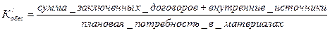 где МЗП — запасы материальных ресурсов в натуральном или стоимостном ОРм — однодневный расход материалов в натуральном или стоимостном выражении. Коэффициент плановой обеспеченности материальными ресурсами (К°о6ес):